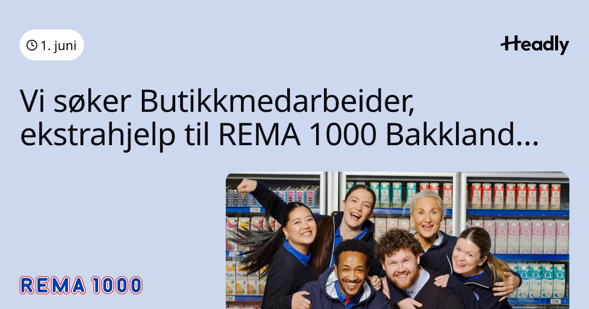 Vi søker Butikkmedarbeider, ekstrahjelp til REMA 1000 Bakklandet!