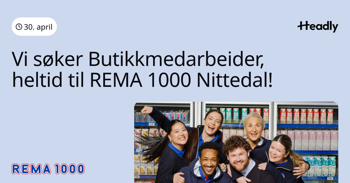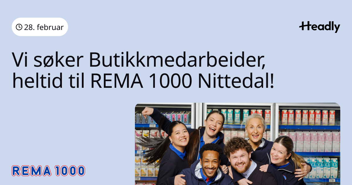 Vi søker Butikkmedarbeider, heltid til REMA 1000 Nittedal!