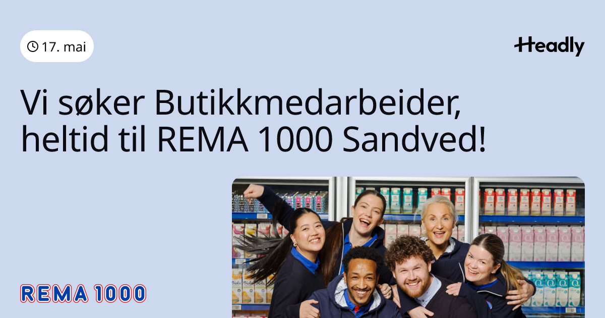 Vi søker Butikkmedarbeider, heltid til REMA 1000 Sandved!