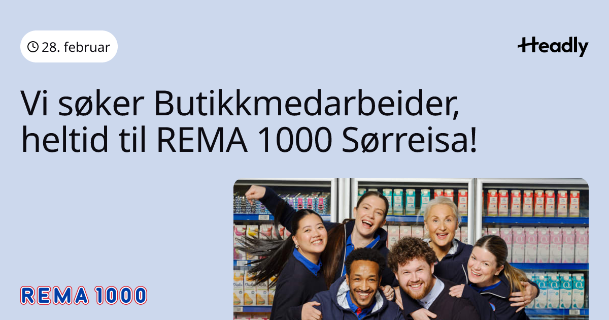 Vi søker Butikkmedarbeider, heltid til REMA 1000 Sørreisa!