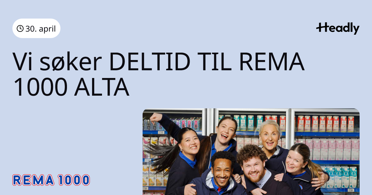 Vi søker DELTID TIL REMA 1000 ALTA