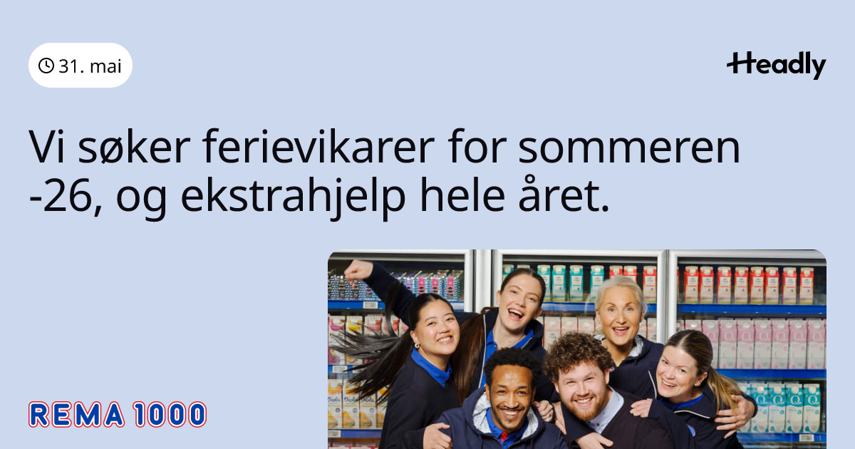 Vi søker ferievikarer for sommeren -26, og ekstrahjelp hele året.
