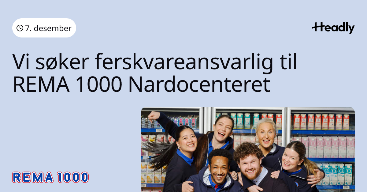 Vi søker ferskvareansvarlig til REMA 1000 Nardocenteret