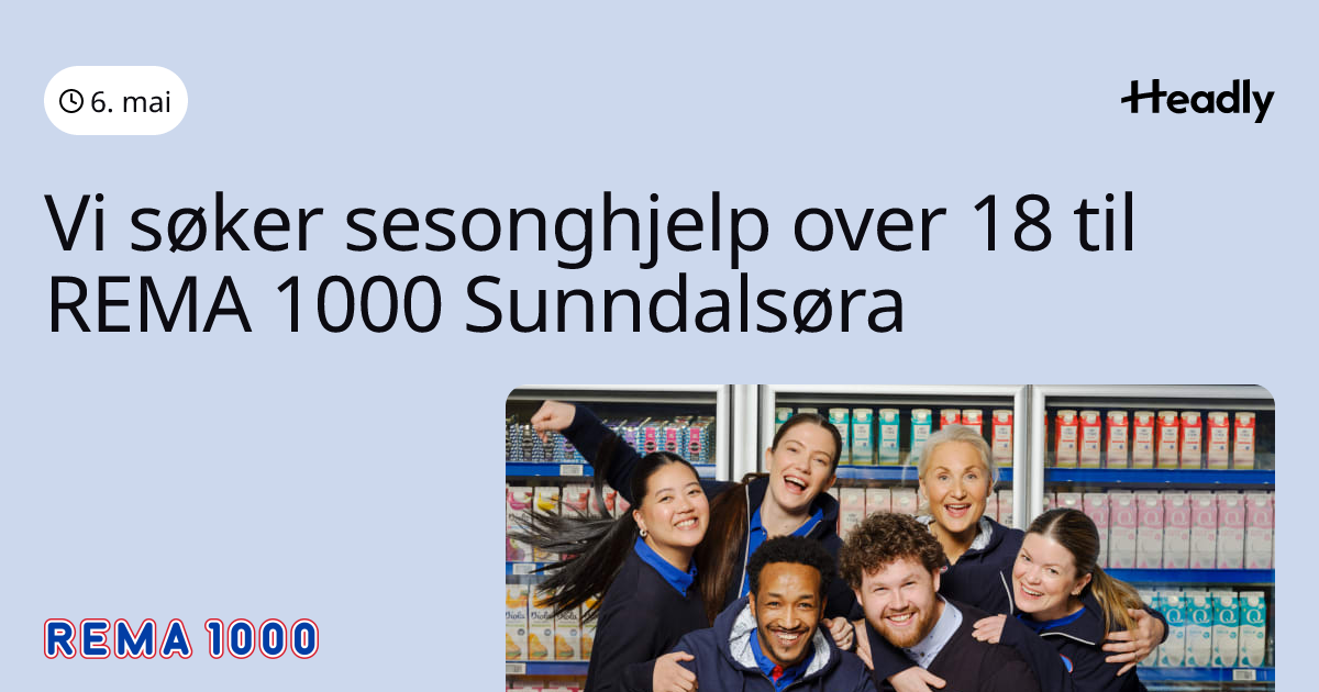 Vi søker sesonghjelp over 18 til REMA 1000 Sunndalsøra