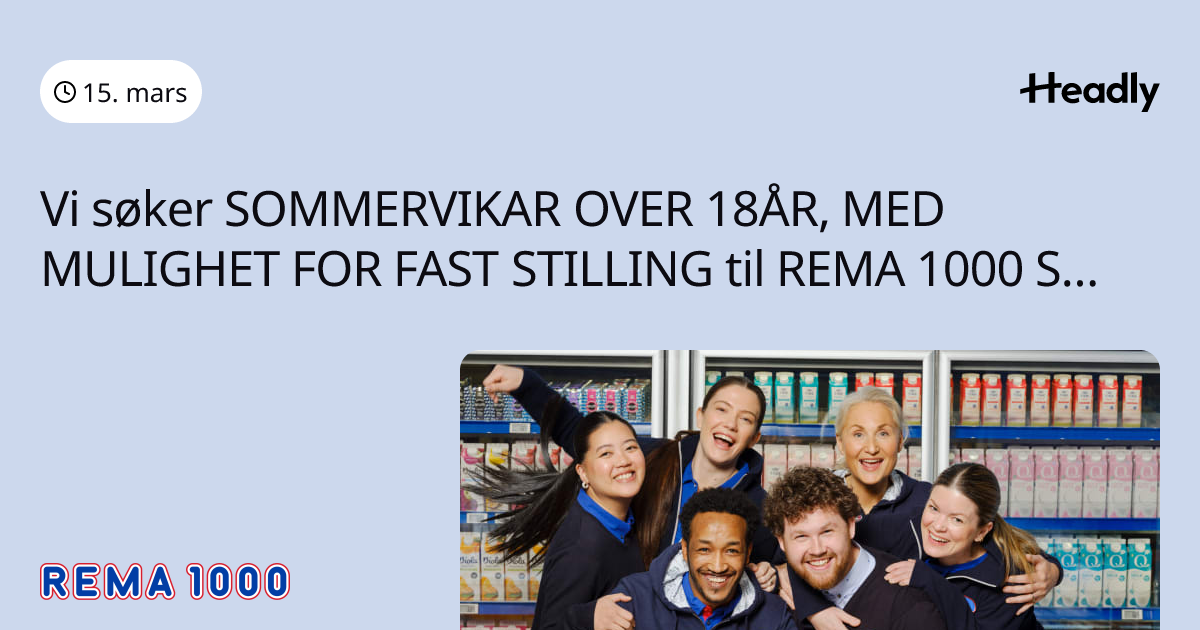 Vi søker SOMMERVIKAR OVER 18ÅR, MED MULIGHET FOR FAST STILLING til REMA 1000 STATHELLE!