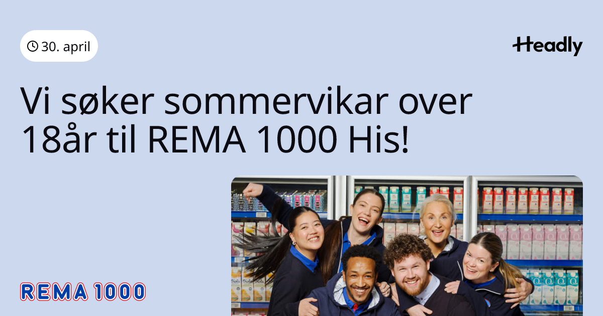 Vi søker sommervikar over 18år til REMA 1000 His!