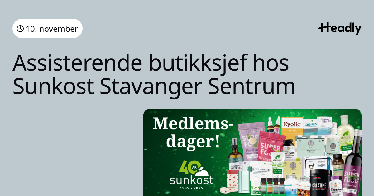 Assisterende butikksjef hos Sunkost Stavanger Sentrum