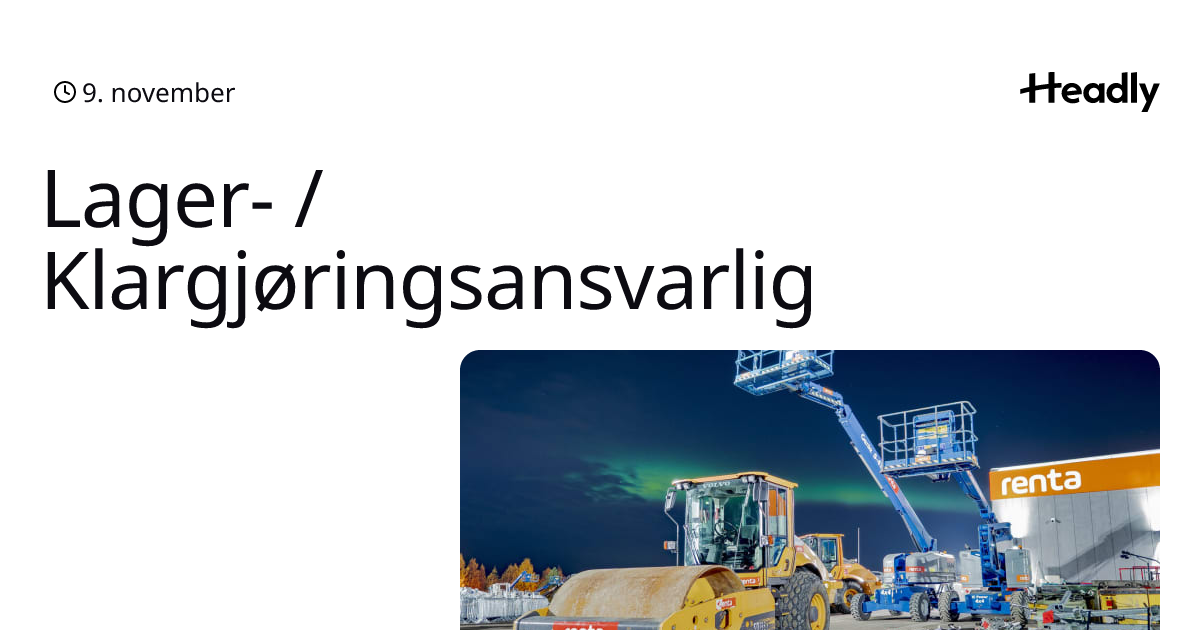 Liker du maskiner/utstyr, og har god orden og kontroll? Renta Tromsø søker Lager- / Klargjøringsansvarlig