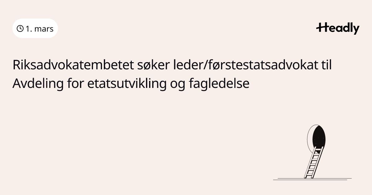 Riksadvokatembetet søker leder/førstestatsadvokat til Avdeling for etatsutvikling og fagledelse