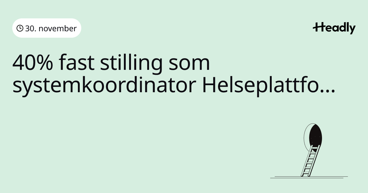 40% fast stilling som systemkoordinator Helseplattformen