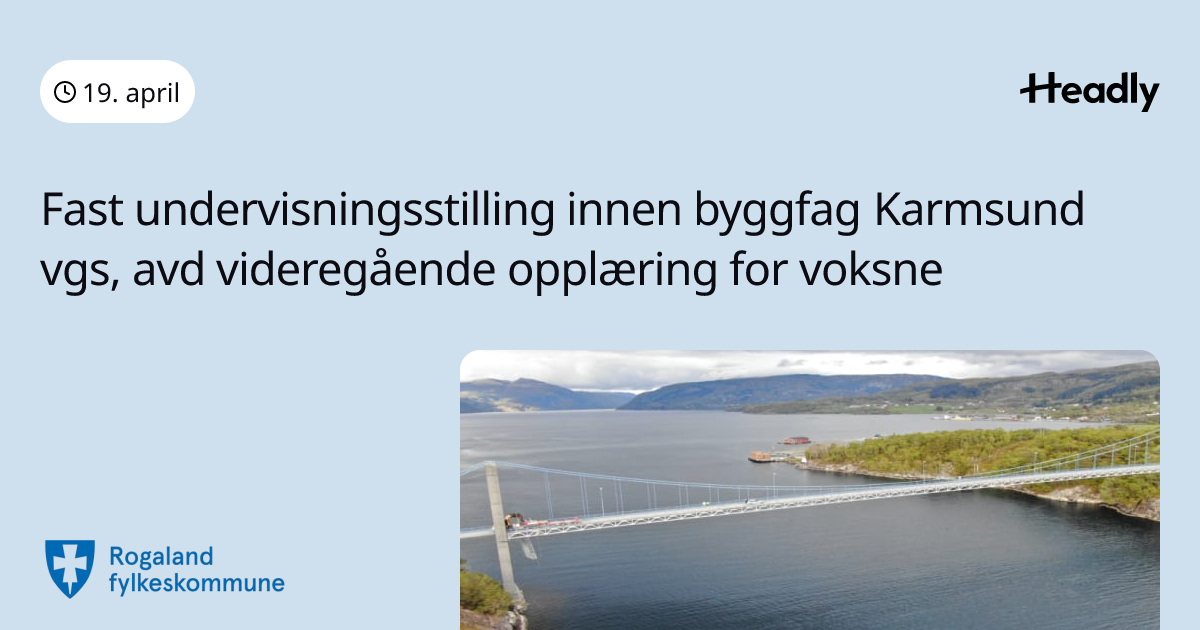 Fast undervisningsstilling innen byggfag Karmsund vgs, avd videregående opplæring for voksne