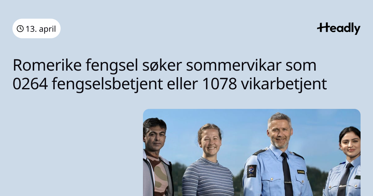Romerike fengsel søker sommervikar som 0264 fengselsbetjent eller 1078 vikarbetjent