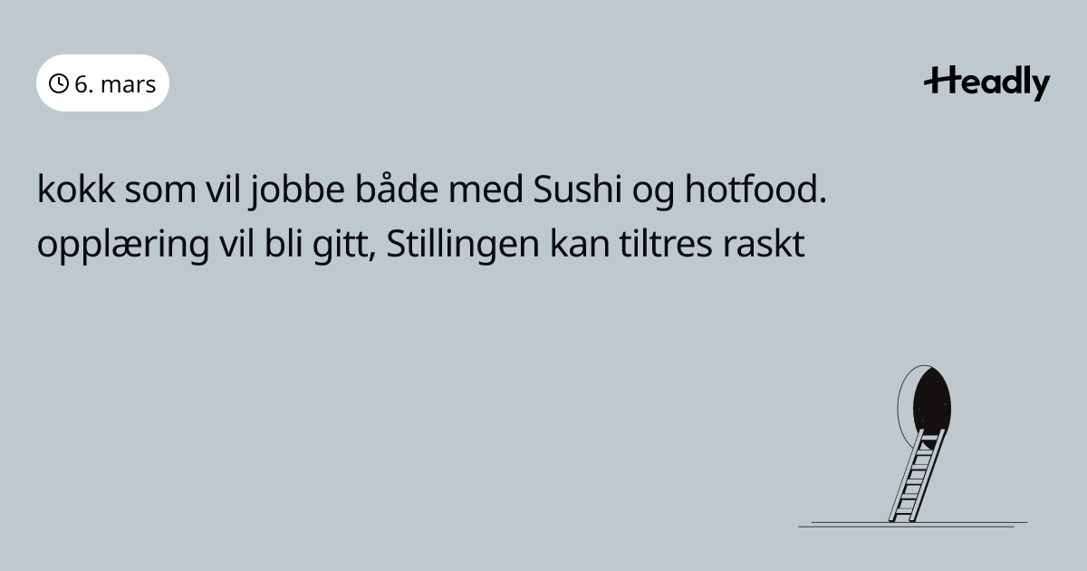 kokk som vil jobbe både med Sushi og hotfood. opplæring vil bli gitt, Stillingen kan tiltres raskt