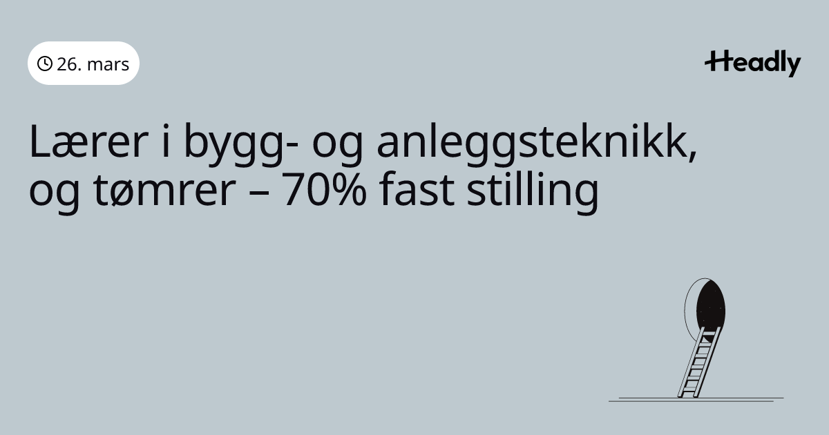 Lærer i bygg- og anleggsteknikk, og tømrer – 70% fast stilling