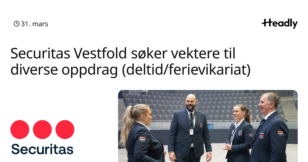 Securitas Vestfold søker vektere til diverse oppdrag (deltid/ferievikariat)
