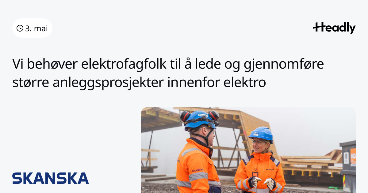Vi behøver elektrofagfolk til å lede og gjennomføre større anleggsprosjekter innenfor elektro