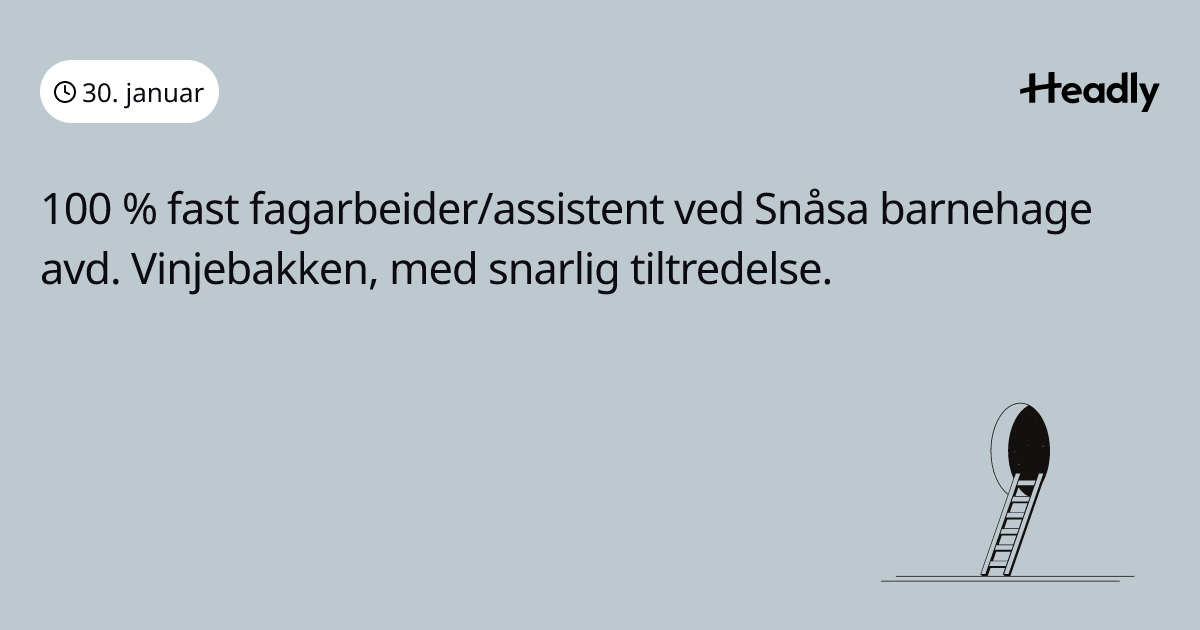 100 % fast fagarbeider/assistent ved Snåsa barnehage avd. Vinjebakken, med snarlig tiltredelse.