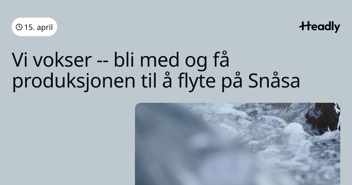 Vi vokser -- bli med og få produksjonen til å flyte på Snåsa