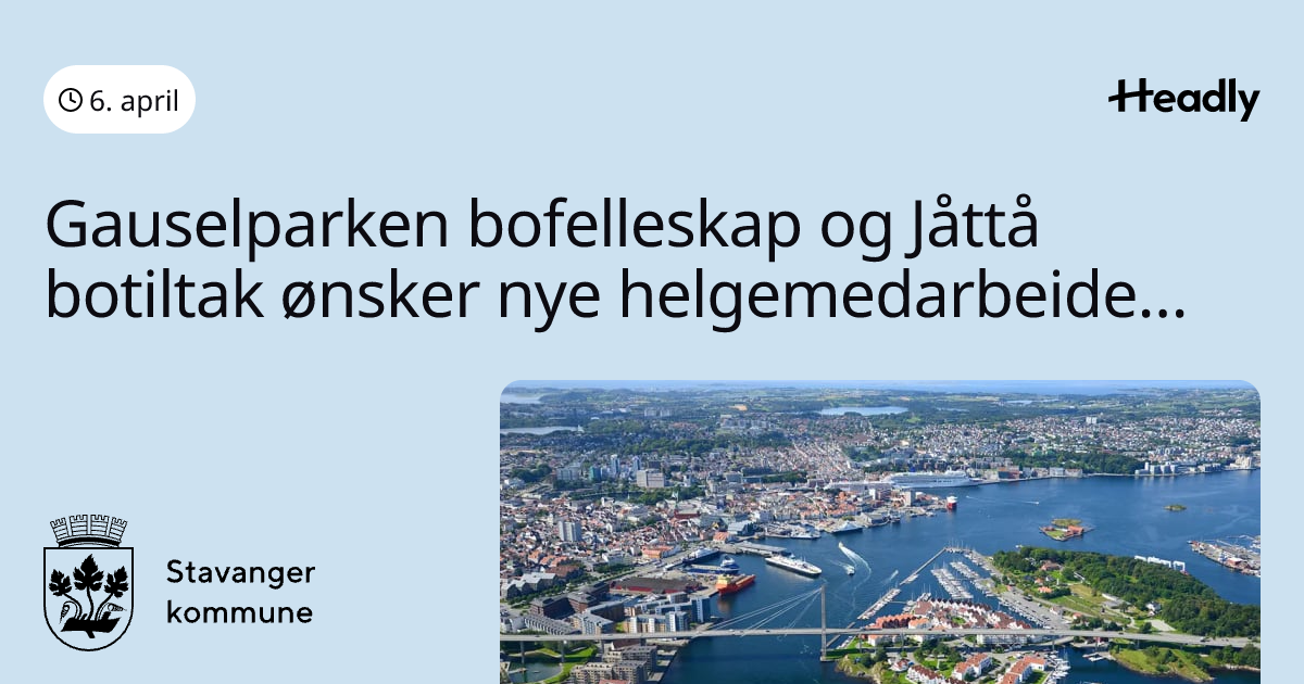 Gauselparken bofelleskap og Jåttå botiltak ønsker nye helgemedarbeidere