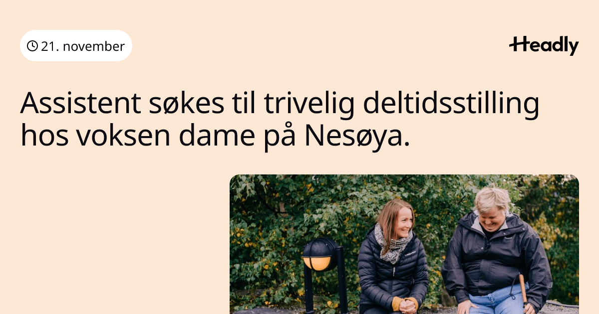 Assistent søkes til trivelig deltidsstilling hos voksen dame på Nesøya.