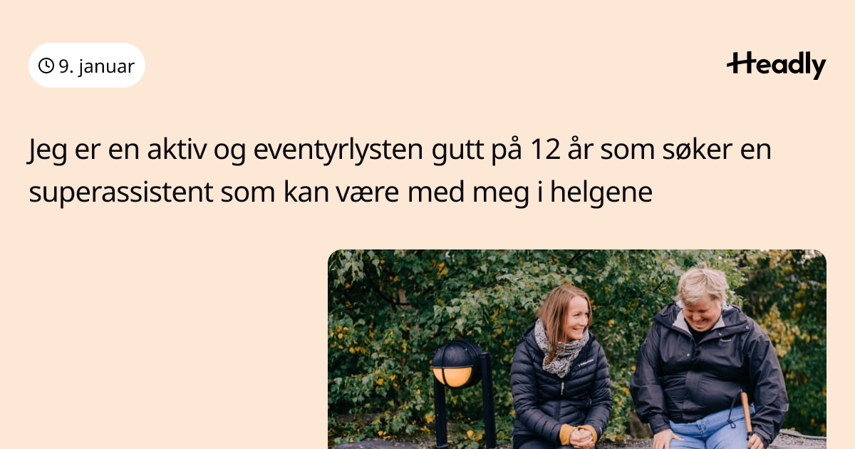 Jeg er en aktiv og eventyrlysten gutt på 12 år som søker en superassistent som kan være med meg i helgene