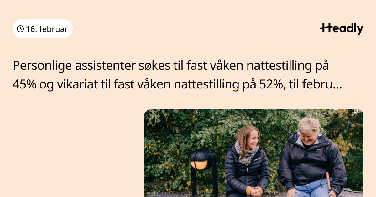 Personlige assistenter søkes til fast våken nattestilling på 45% og vikariat til fast våken nattestilling på 52%, til februar 2027