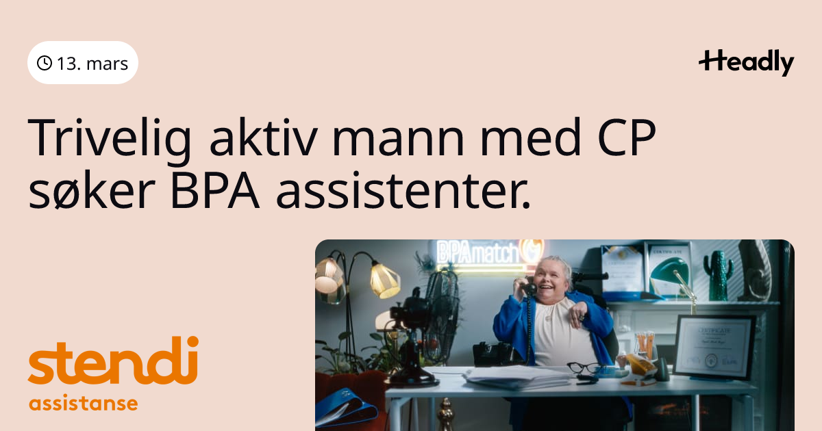 Trivelig aktiv mann med CP søker BPA assistenter.