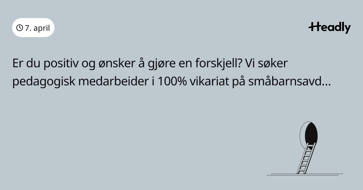 Er du positiv og ønsker å gjøre en forskjell? Vi søker pedagogisk medarbeider i 100% vikariat på småbarnsavdeling