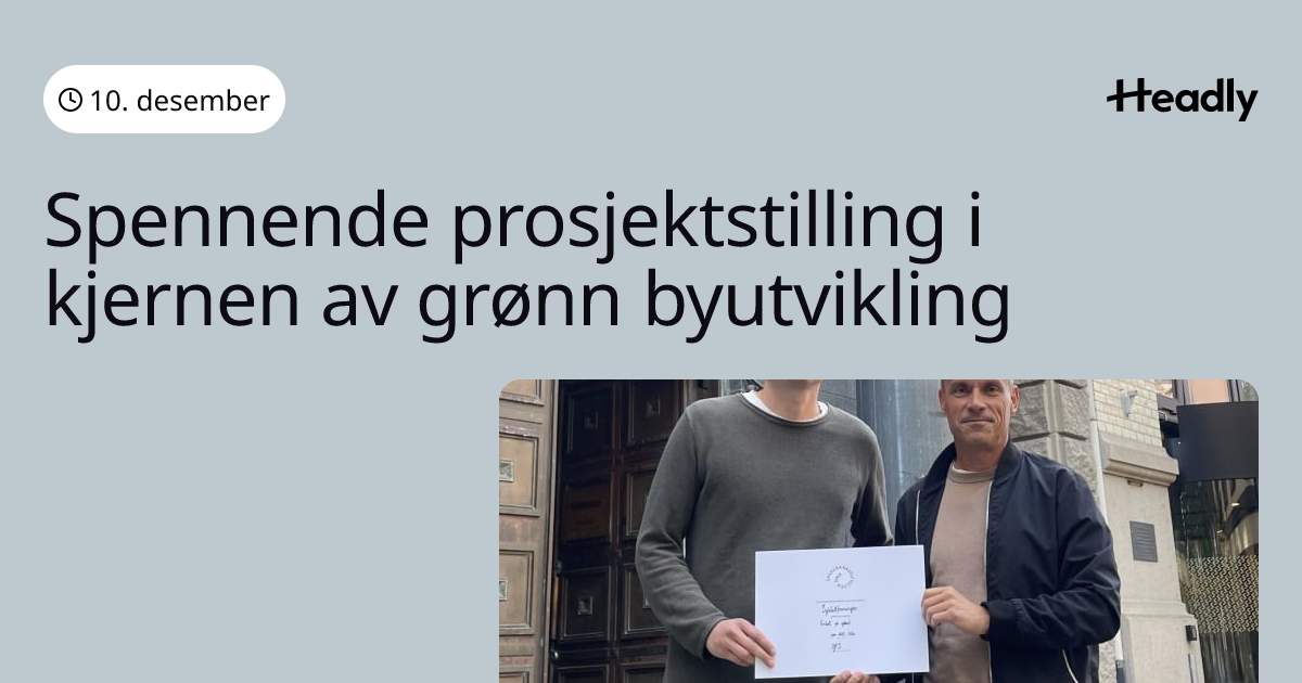 Spennende prosjektstilling i kjernen av grønn byutvikling