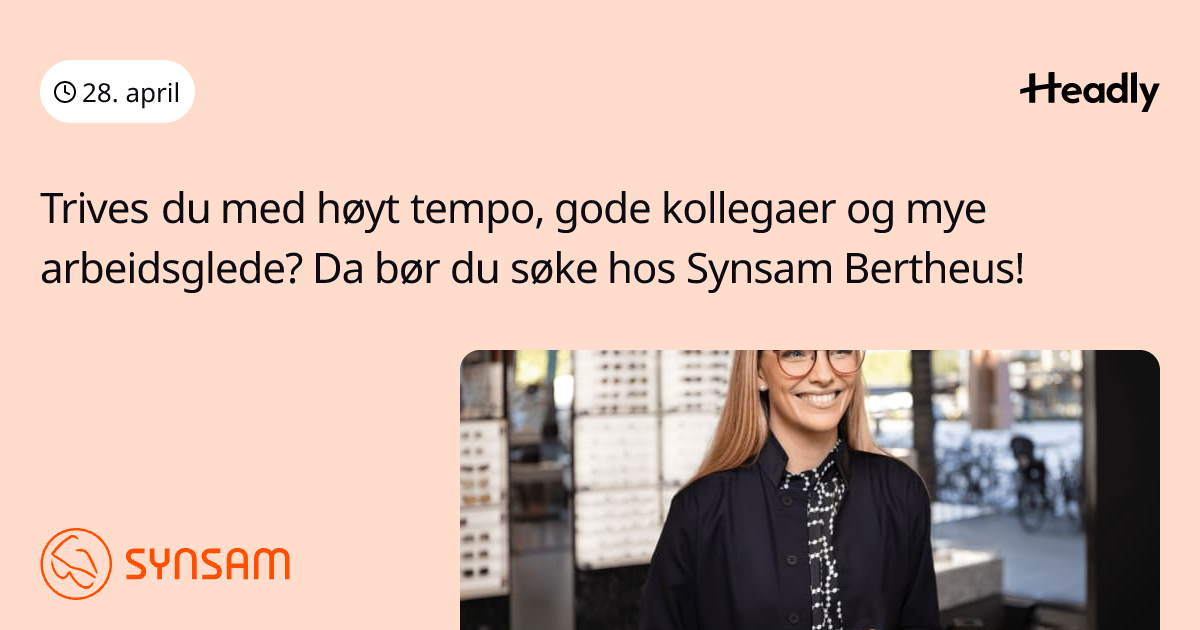 Trives du med høyt tempo, gode kollegaer og mye arbeidsglede? Da bør du søke hos Synsam Bertheus!