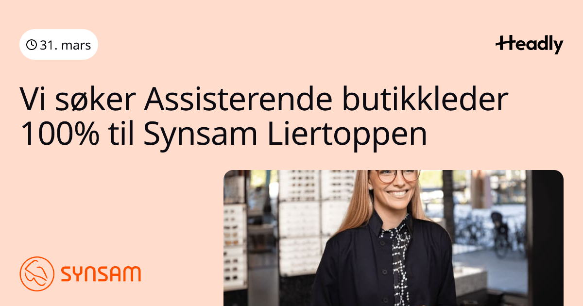 Vi søker Assisterende butikkleder 100% til Synsam Liertoppen