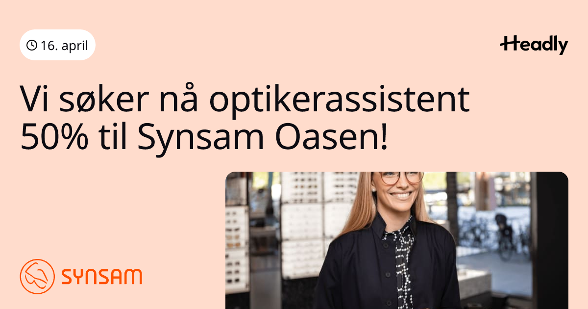 Vi søker nå optikerassistent 50% til Synsam Oasen!