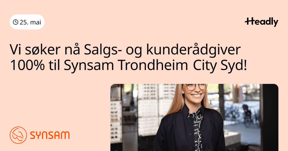 Vi søker nå Salgs- og kunderådgiver 100% til Synsam Trondheim City Syd!