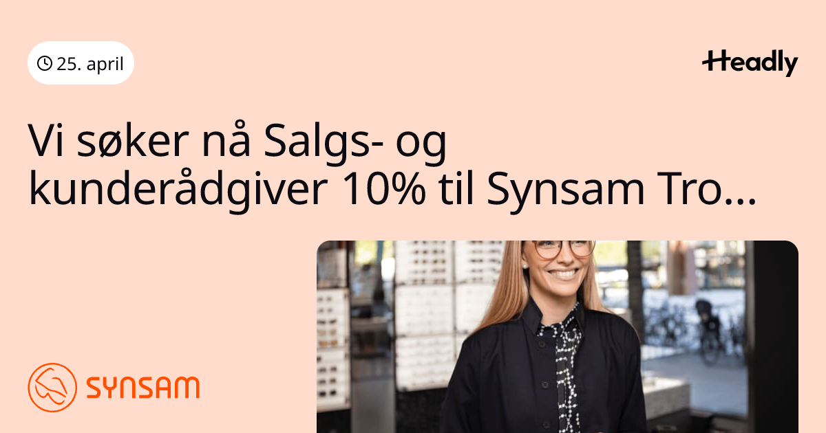 Vi søker nå Salgs- og kunderådgiver 10% til Synsam Tromsdalen!