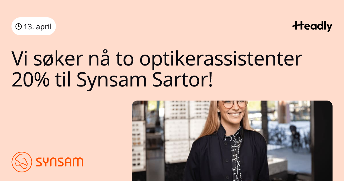 Vi søker nå to optikerassistenter 20% til Synsam Sartor!