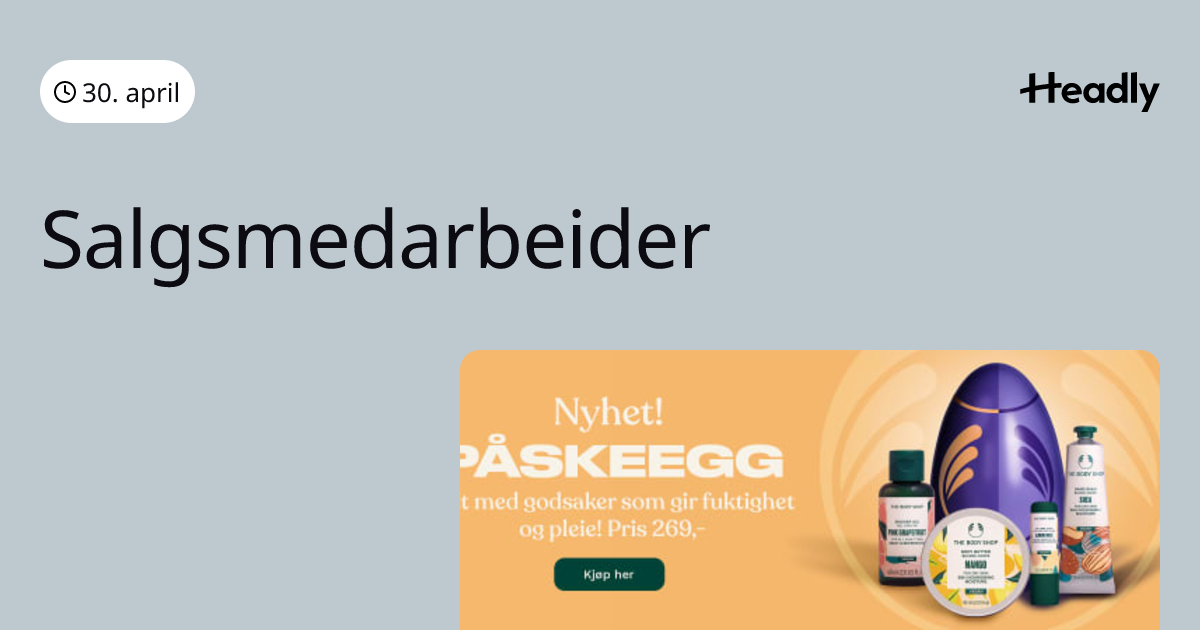 THE BODY SHOP - Thon Senter Strømmen søker 20% Salgsmedarbeider