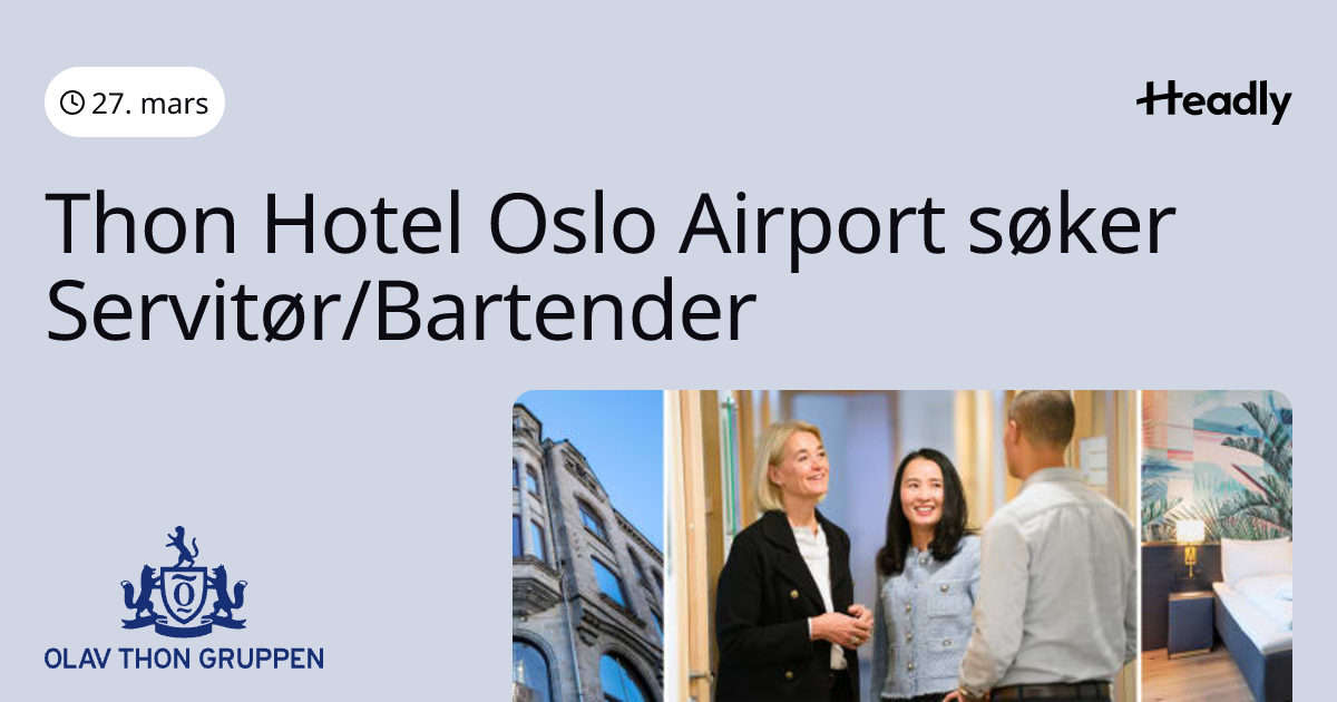 Thon Hotel Oslo Airport søker Servitør/Bartender