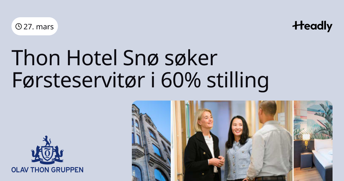 Thon Hotel Snø søker Førsteservitør i 60% stilling