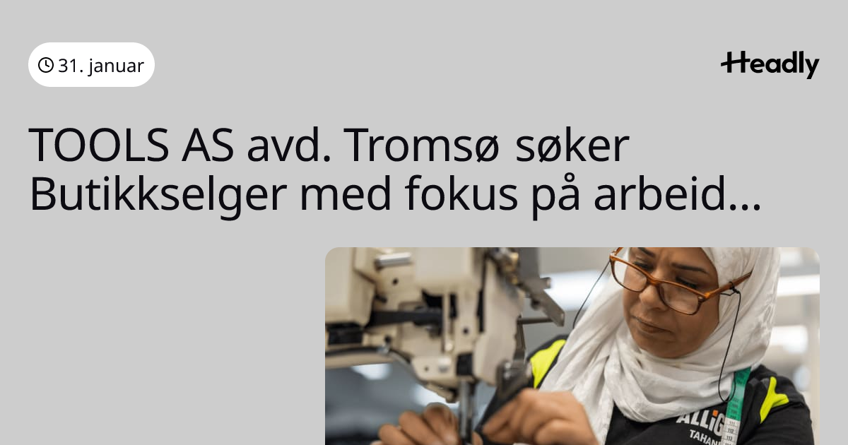 TOOLS AS avd. Tromsø søker Butikkselger med fokus på arbeidstøy
