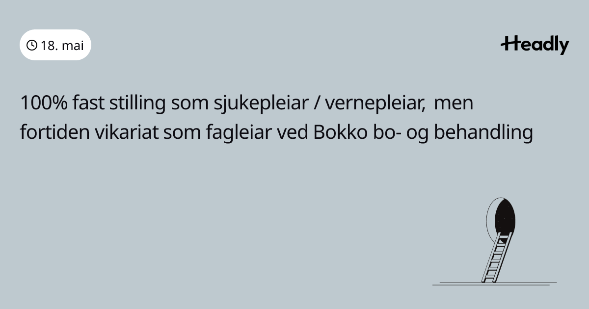 100% fast stilling som sjukepleiar / vernepleiar, men fortiden vikariat som fagleiar ved Bokko bo- og behandling