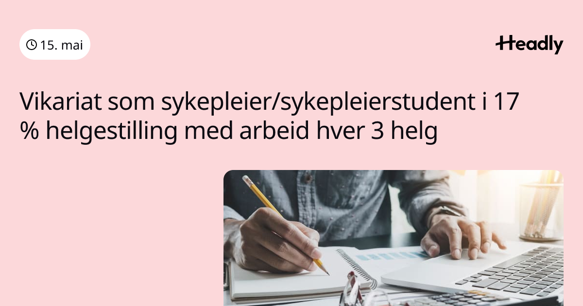 Vikariat som sykepleier/sykepleierstudent i 17 % helgestilling med arbeid hver 3 helg med mulighet til forlengelse