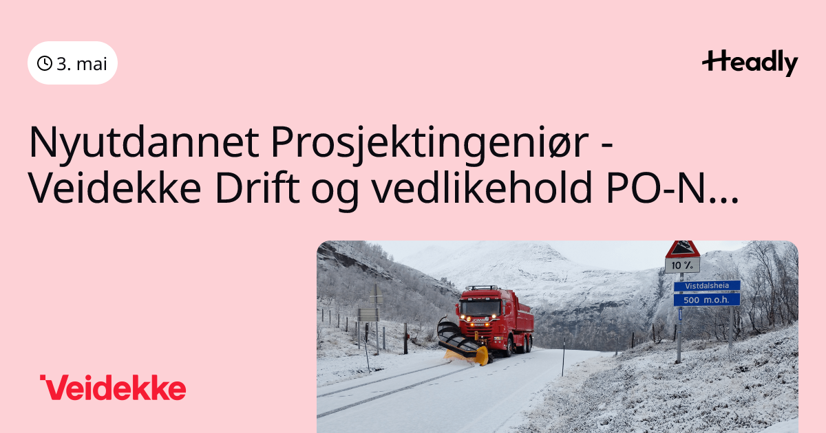 Nyutdannet Prosjektingeniør - Veidekke Drift og vedlikehold PO-Nord