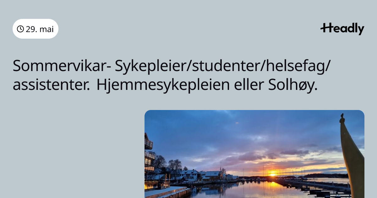 Sommervikar- Sykepleier/studenter/helsefag/assistenter. Hjemmesykepleien eller Solhøy.