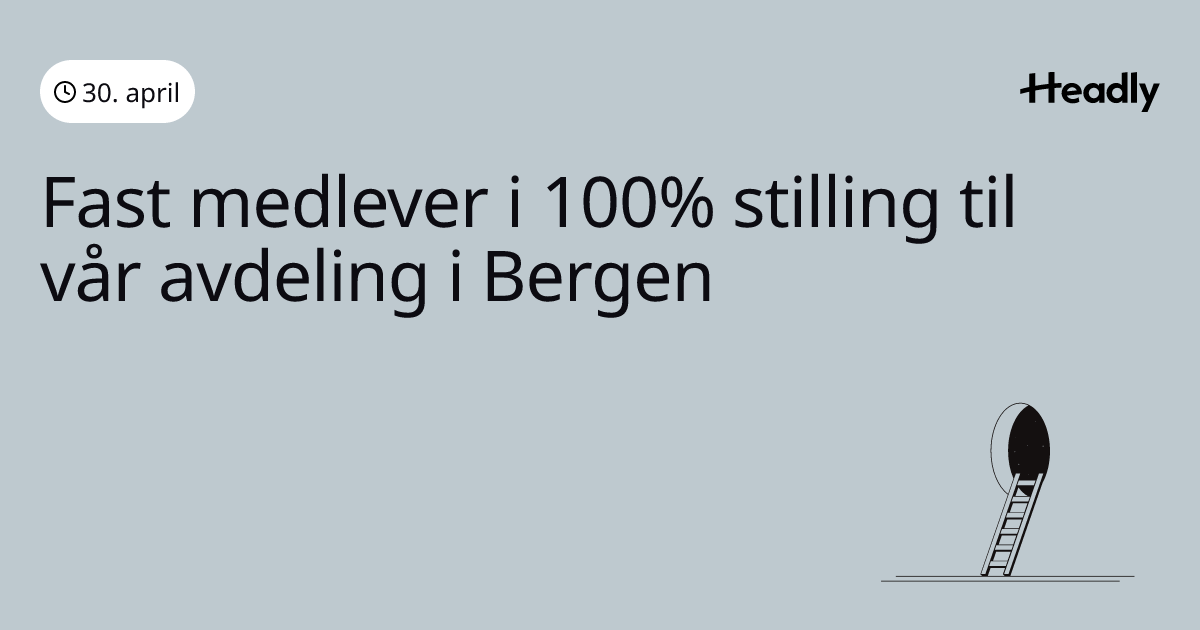 Fast medlever i 100% stilling til vår avdeling i Bergen