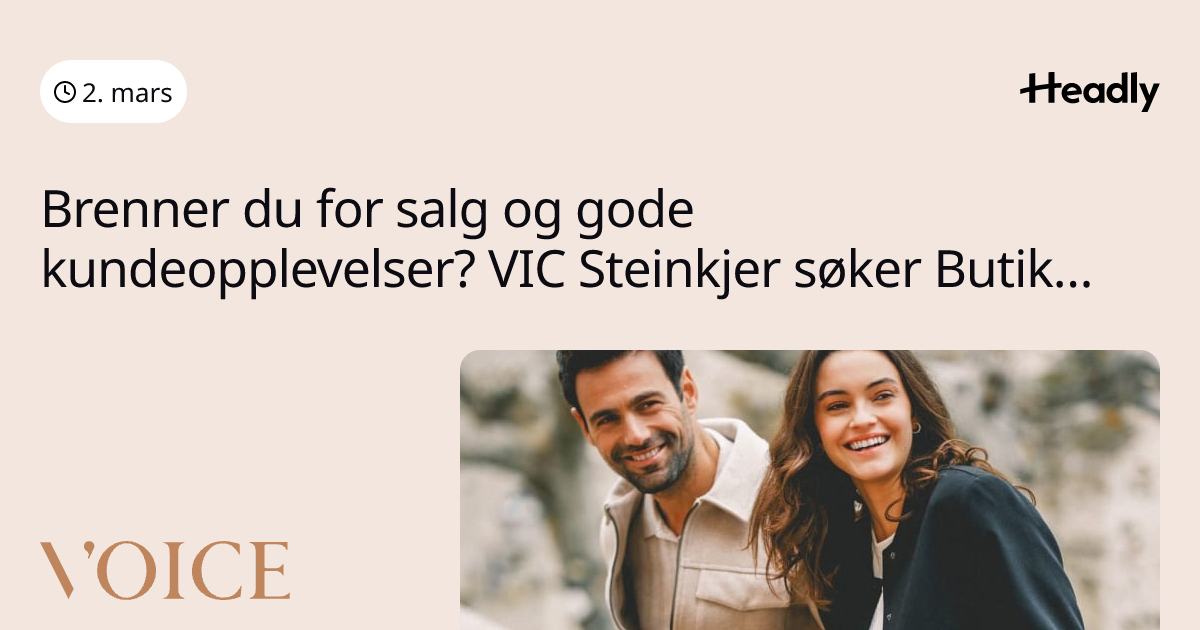 Brenner du for salg og gode kundeopplevelser? VIC Steinkjer søker Butikkselger 80%!