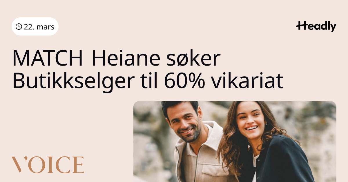 MATCH Heiane søker Butikkselger til 60% vikariat