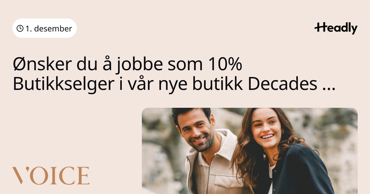 Ønsker du å jobbe som 10% Butikkselger i vår nye butikk Decades Skedsmo?