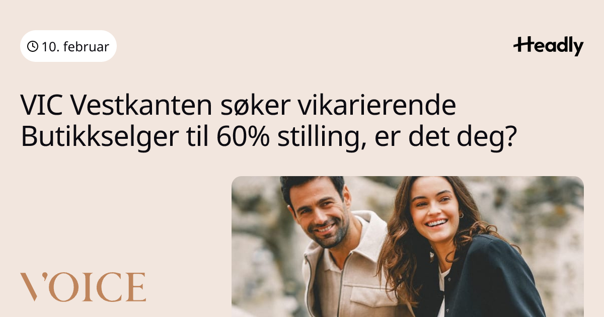 VIC Vestkanten søker vikarierende Butikkselger til 60% stilling, er det deg?