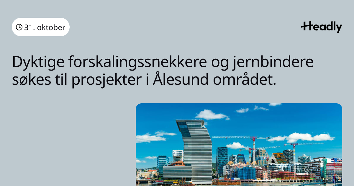 Dyktige forskalingssnekkere og jernbindere søkes til prosjekter i Ålesund området.