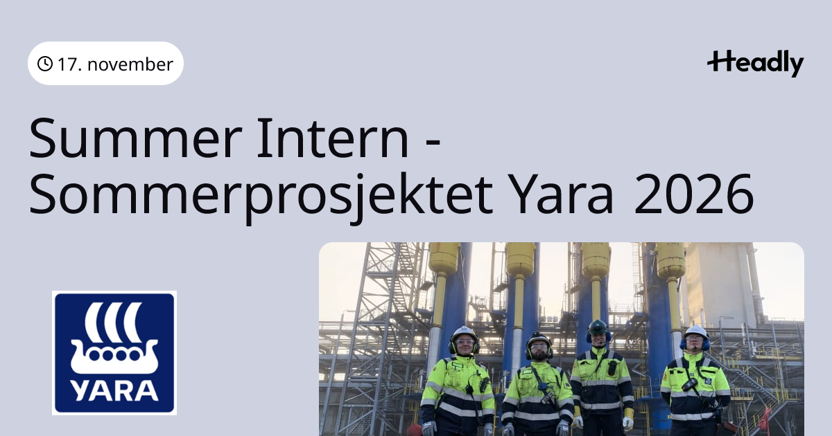 Summer Intern - Sommerprosjektet Yara 2026